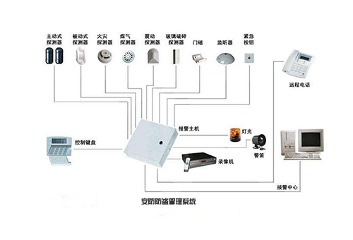 防盜報警系統(tǒng)由報警主機、紅外雙鑒探測器、聲光報警器等設備組成。